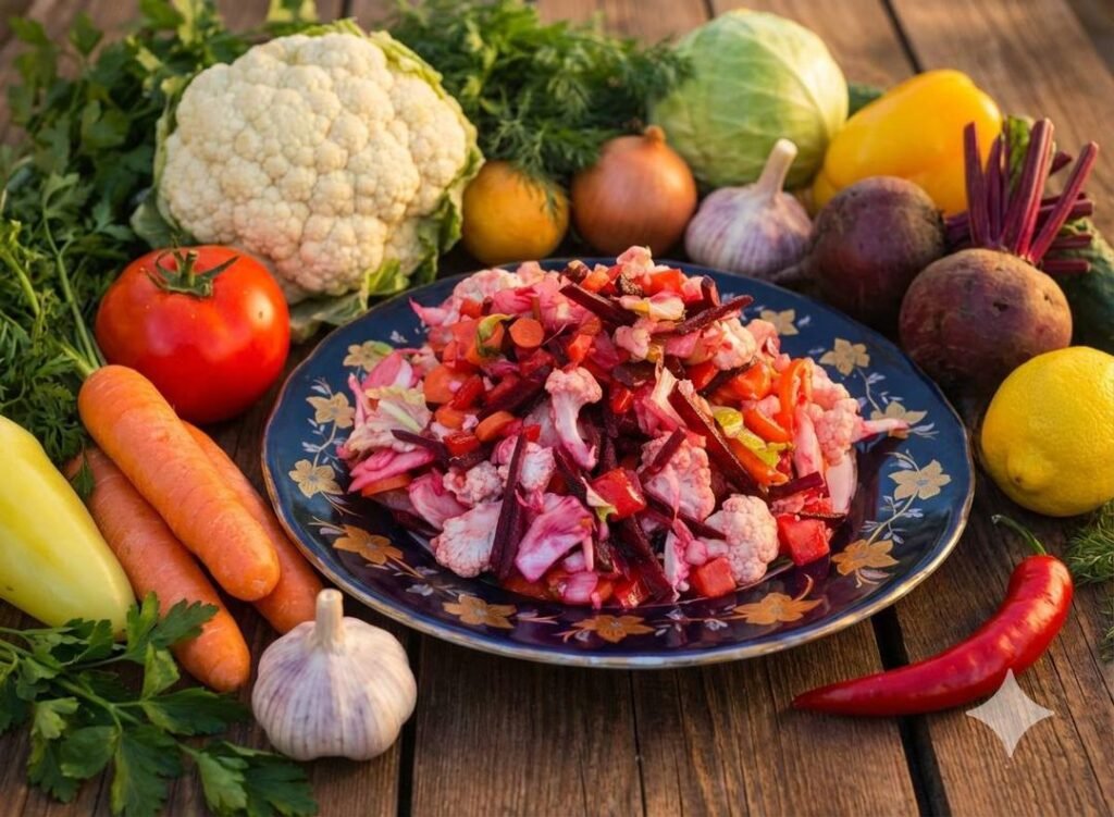 *الفينيغريد=سلطة روسية تقليدية مكونة من تشكيلة من الخضار المطبوخة.